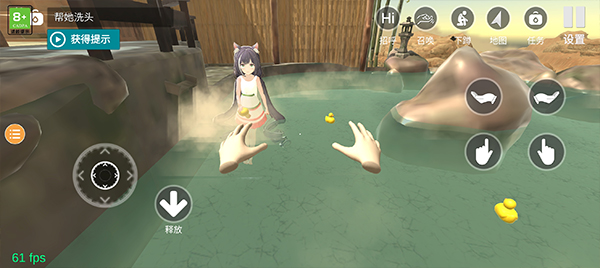 5.等到小忍进入浴缸后你就可以进去卫生间帮她洗头了,根据指示拍她的头完成沐浴,气泡计会随着你的互动进度增长。