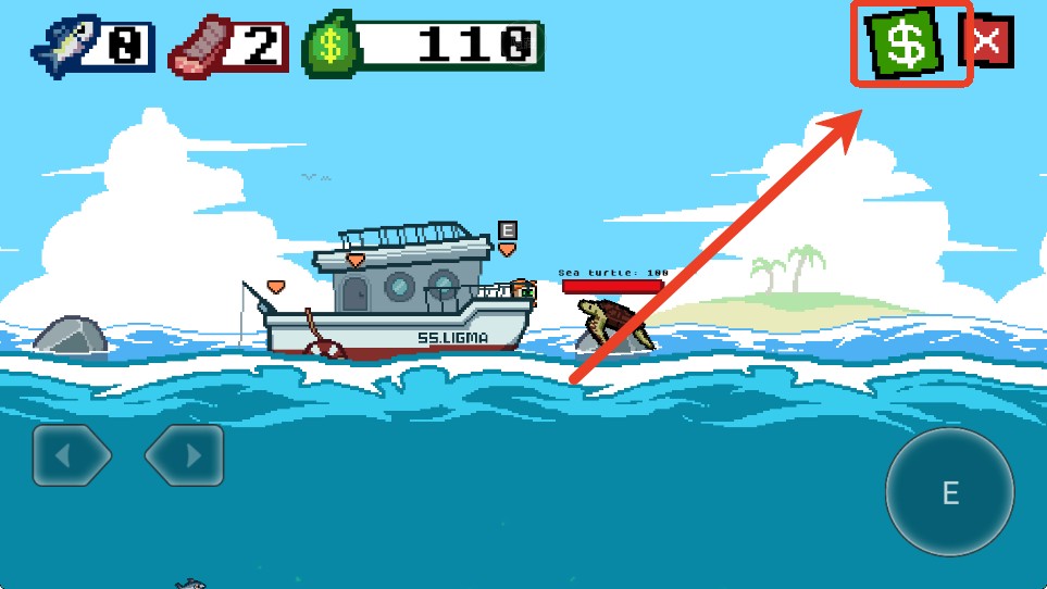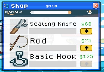 6、点击右上角按钮进入道具商店,使用获得的金币升级鱼钩、钓线及刀具,提高捕捉效率与收益能力。
