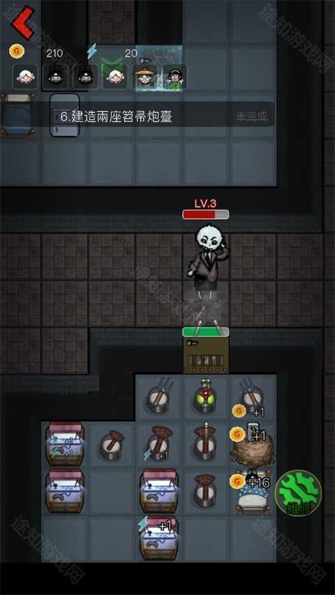 4、开局先升级门,然后建造炮台,其次升级床铺,床铺的等级决定你游戏的成败。