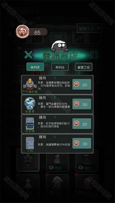 点击右上角的蜜獾商店,在里面不断升级自己的属性,这样可以让玩家在下次游戏的时候可以获得额外的攻击以及防御属性,这样就可以轻松的面对猛鬼的攻击了。