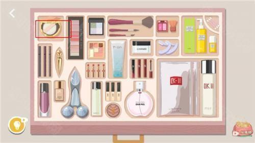 3、所有化妆品放进去之后,剩下粉扑无处安放,点击粉饼盒子打开。