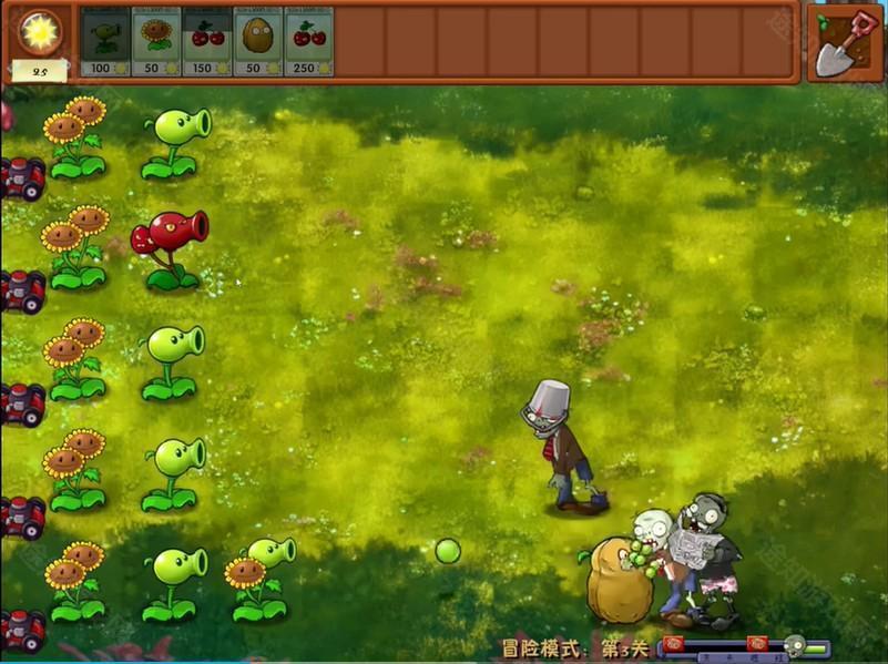 1、开局用樱桃炸弹炸土豆,并且在第一排种满向日葵,一个土豆雷的时间足够种满向日葵。