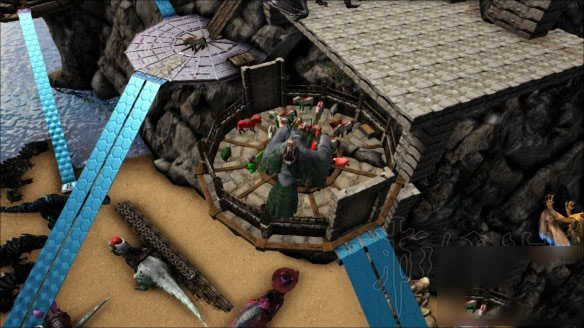 江湖上不是有个传说嘛,当你在家附近看到了精英霸王龙,请随时收拾细软搬家跑路。由于精英龙天生能穿越地形。所以卡墙是没什么用的。没试过卡巨兽恐龙门,觉得很费材料。类似这种水里有障碍物的,然后水够深,霸王龙爬不上来的位置(其实这里还是不行的,因为霸王龙可能去对岸,最好找那种海边,没有对岸的),你就可以站在岸边跟他大眼瞪小眼,他够不着你就会跑,跑不远就会回来。准备足够的弩和箭就开撸吧。记得旁边放一只被动的坐骑, 万一粗事了马上坐上去跑路。和弩都是杀精英龙爆的。然后斧子矛都是开光柱开的黄色图纸。