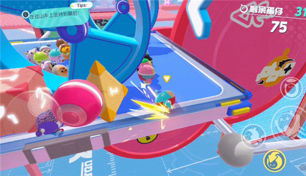 3、萌萌的蛋仔,被扔进重重关卡之内,为了赢得通关金币,争先恐后往终点冲去,他们相互碰撞。