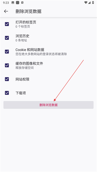 4、勾选需要删除的数据,点击删除浏览数据即可。