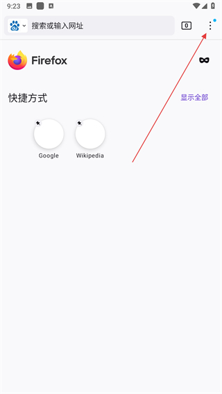 1、打开火狐浏览器,点击右上角的三点菜单图标。