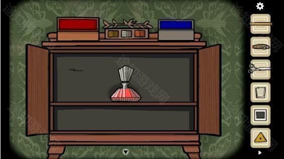 3、打开左边的盒子获得「钥匙」,移动旁边盒子上的方块到正确的位置,打开盒子后获得「照片碎片」,点击镜子穿上大衣,出现女人后来到门口
