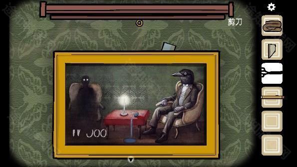 32、点击镜子喝下药水后获得「钥匙」,用钥匙打开门,根据乌鸦飞行的方向前进,之后遇到mr.crow获得一份地图