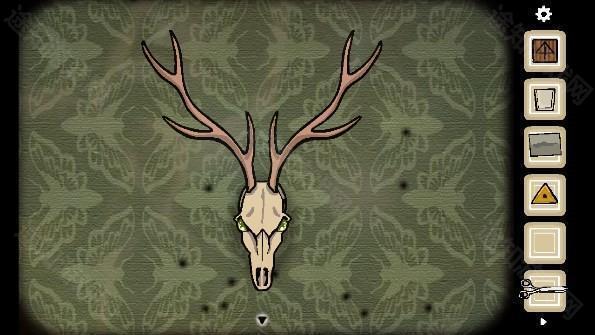 19、将眼球放入鹿的眼窝中后出现一群飞蛾,根据飞蛾的形状「鹿头、时钟、打字机、电视、门、镜子」移动到对应的位置,点击镜子,将飞蛾一个个点死之后进入男主的脑内世界