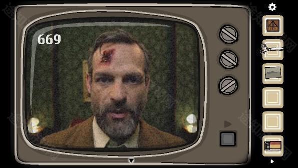 15、将胶片2放入投影机后获得提示「588」和五个符号对应的东西,将电视频道拨到588,根据画面中出现的顺序「乌鸦、男人、女人、药瓶、黑影」找到对应的符号