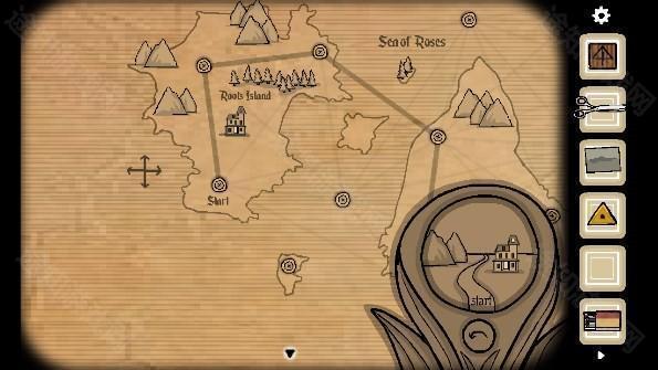 33、根据地图指示到达有画×的地方,在画叉的地方有一块石头标明了其他路线,根据石头的路线到达位置后会获得一个「雕像」,在去第三个画叉的地方时会遇到黑影,点击黑影身上出现的光圈即可劝退,收集最后一个雕像后按地图来到最终点,将三个雕像放入大门的凹槽内,打开大门