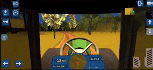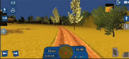 3、这是游戏初期您拥有的田地之一,田里的小麦已经成熟,是时候收割了,使用联合收割机即可收割田里的作物,右侧滑动条是油门,控制前进后退,左侧的方向盘控制左右转弯。