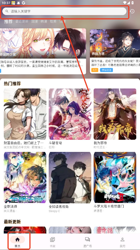 2.输入你要搜索的漫画名或者作者名,然后开始搜索