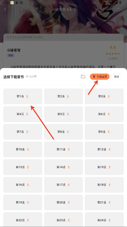 2.点击要下载的章节,就会开始下载,如果想下载全部章节,就点击左上角的下载全部,然后等待下载完成即可