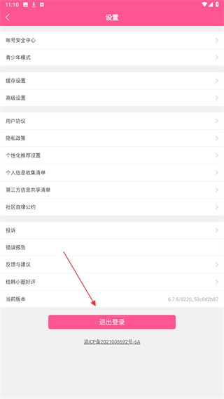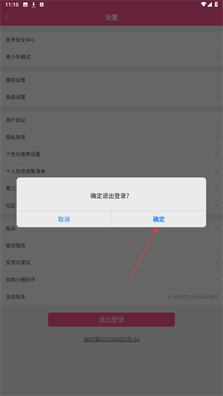 3、在设置的页面内,点击最下方退出登录的按钮。