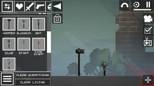 2、进入游戏如图,点击左上角菜单按钮,添加两个物品在地上;