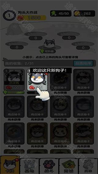 5、正如所见,该游戏是利用卡牌的方式去排兵布阵的,玩家可以收集很多类型的狗子。