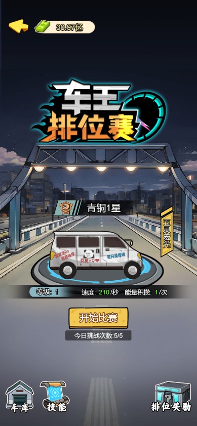 车库:可升级车辆登记提高速度,达到一定赛车次数,可解锁新车!