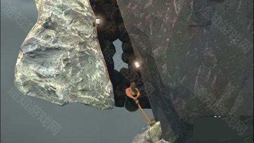 6、将锤头对准石头方向,利用推力弹向右边平台;