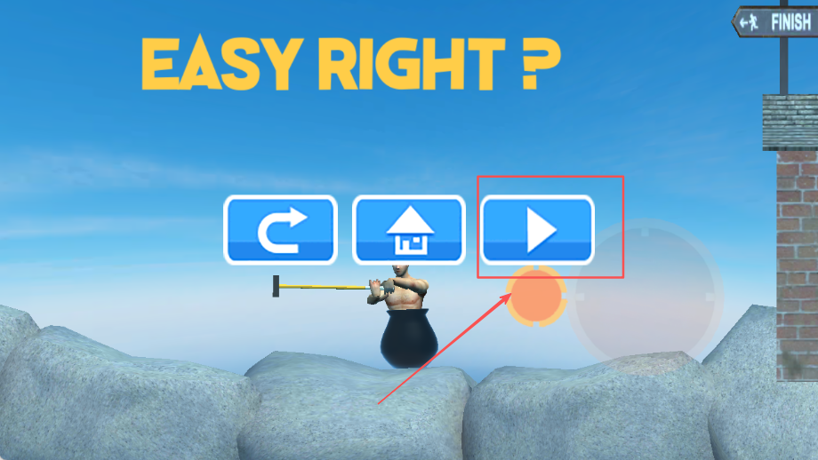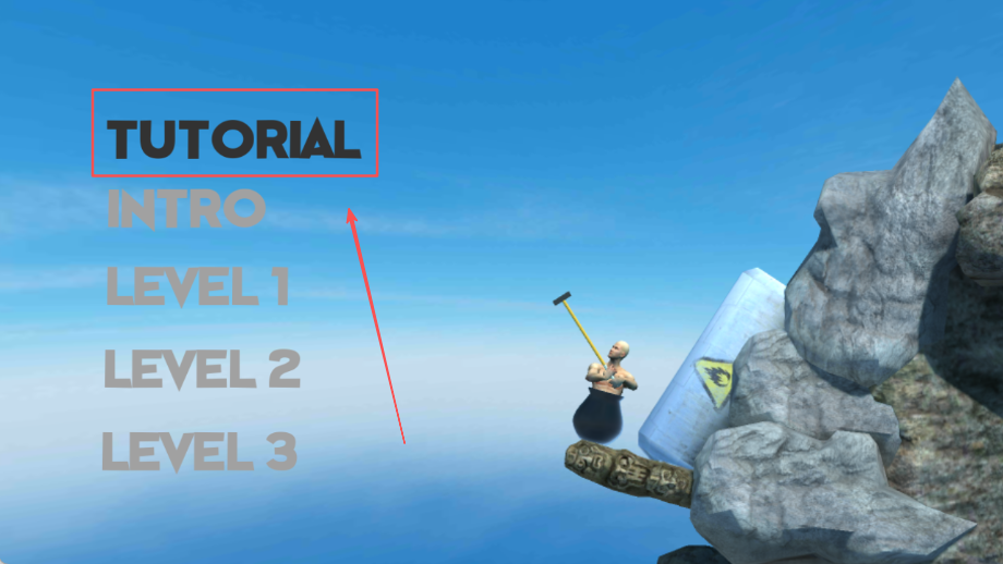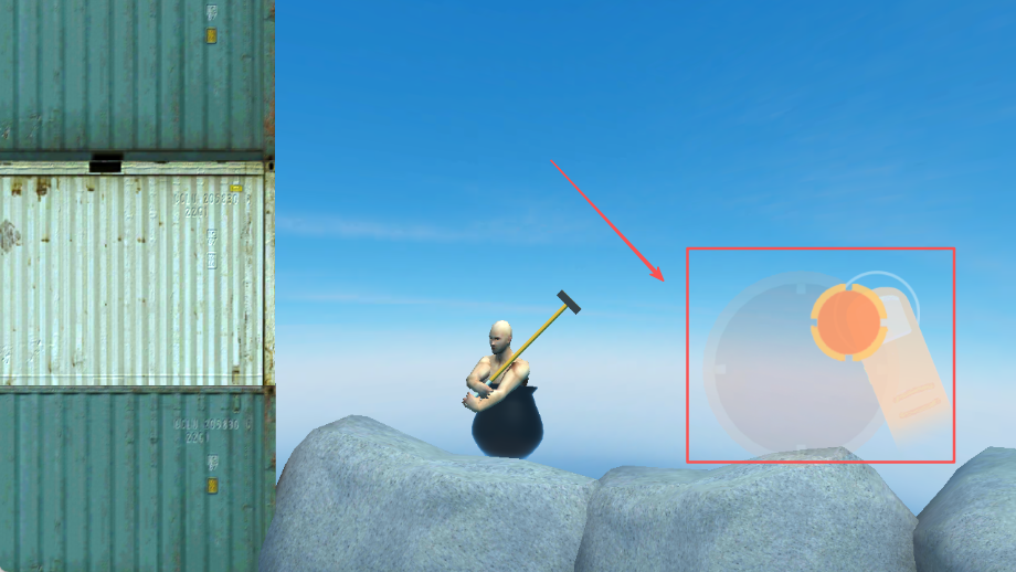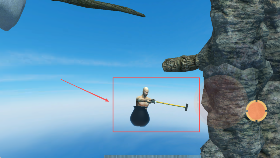 1、玩家的核心目标就是攀登那座高耸入云、障碍丛生的大山,仅凭手中的一把锤子和承载自己的锅,在反复的尝试中寻找一条通往山顶的可行路径。