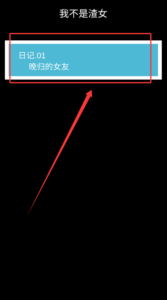 2、首先,打开游戏“我不是渣女”,点击开始游戏的按钮。进入第一个场景后,看到“日记.01”和标题“晚归的女友”。