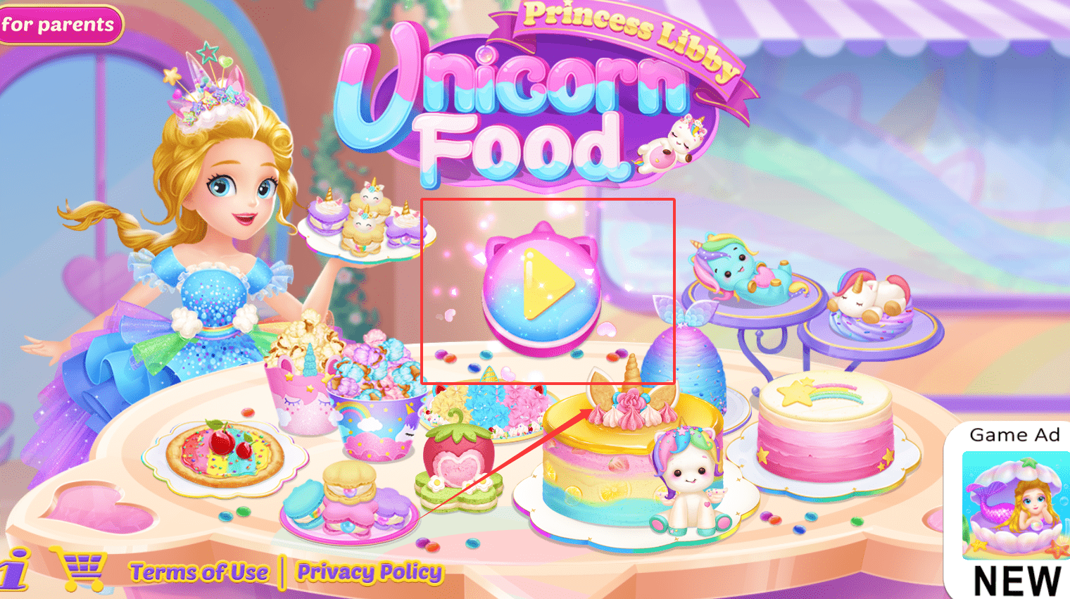 1、打开这款名为“Pincess High Unicorn”的粉色应用呀,先点击底部的“for parents”家长入口。