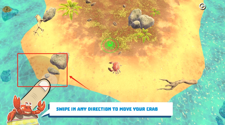1、开局需操控螃蟹快速移动,搜寻宝箱获取武器道具。通过灵活走位避开初期混战,以积累装备优势为主,为后续战斗打下基础并熟悉操作手感。