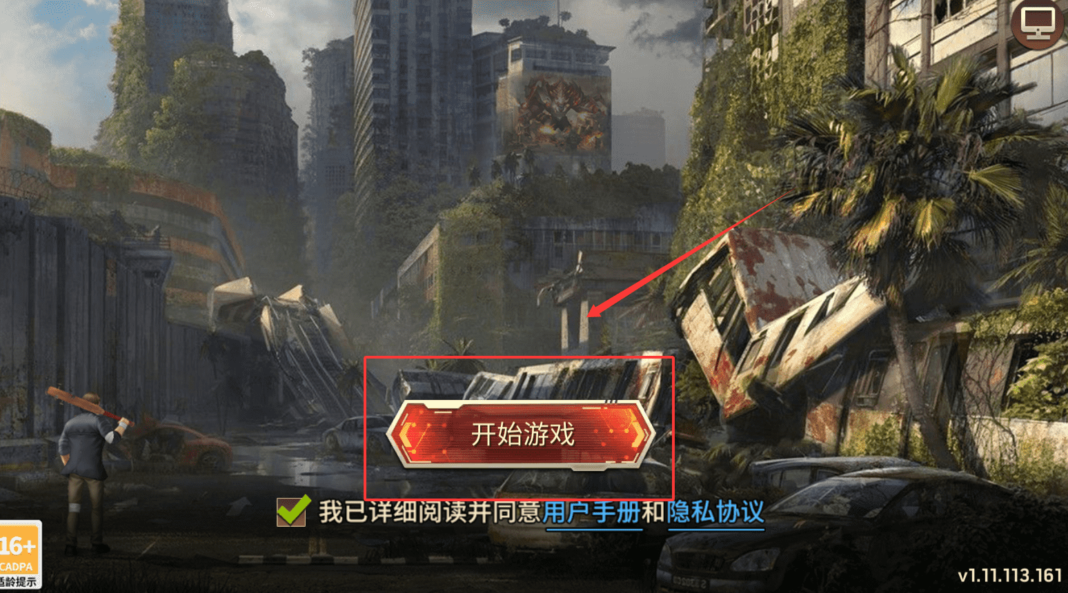 1、首先哦,你要找到游戏并启动它,在初始界面会看到“开始游戏”与“16+”的提示。