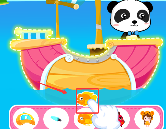 1、进入游戏后,小朋友们首先需要从喷火龙舟、豪华潜水艇等众多炫酷船只中挑选一艘作为航海座驾,并利用丰富的图案和色彩对其进行个性化装扮,为即将开始的冒险旅程。