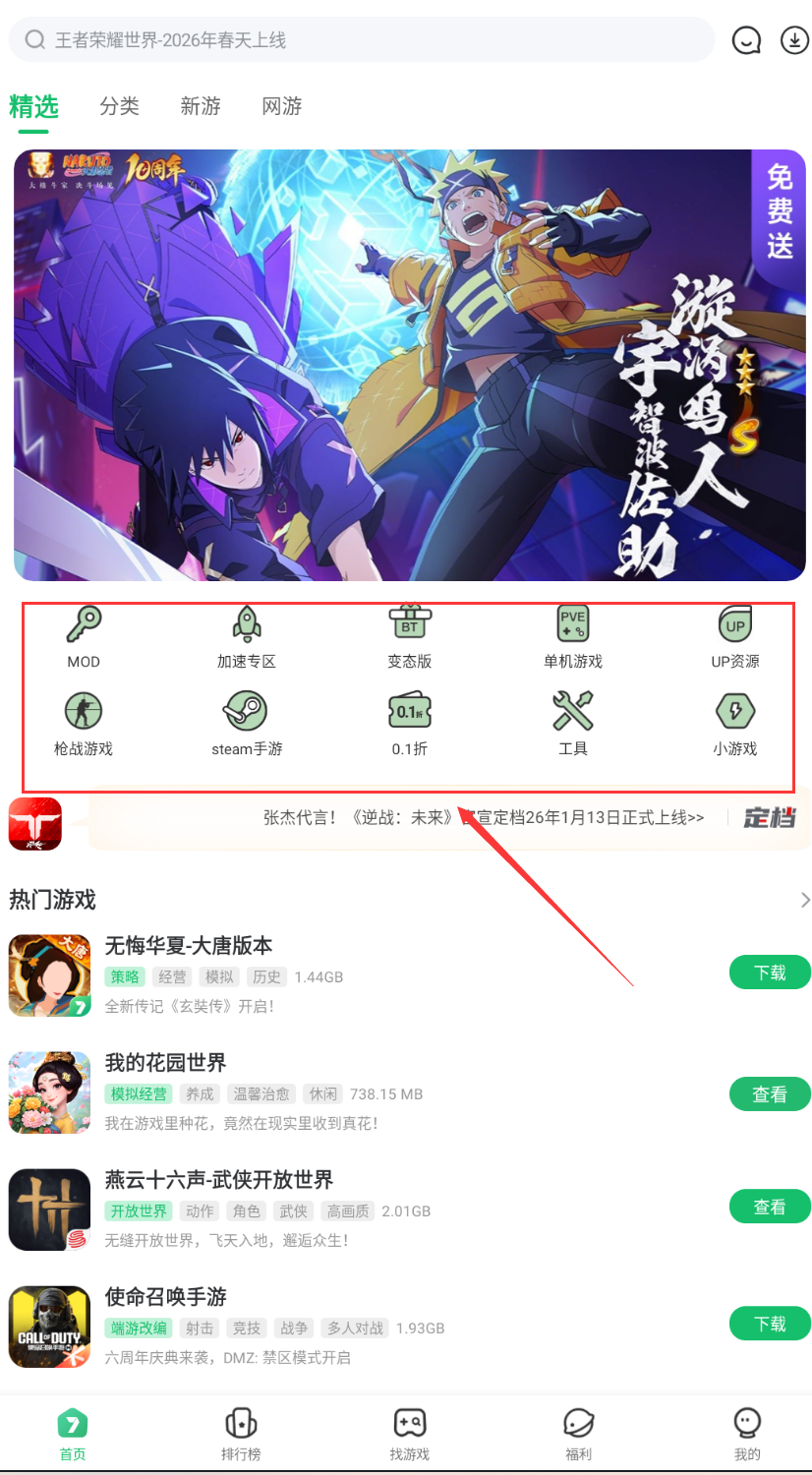 2、要寻找MOD或修改版游戏,可以在分类中进入MOD专区或新游榜的MOD榜。