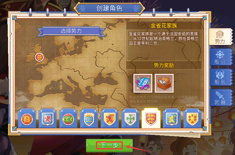 1、初次进入游戏需创建角色并选择初始势力,不同势力将影响起始港口与新手奖励,完成基础教学后即可获得第一艘帆船,通过界面左侧的航海地图规划首次贸易路线。