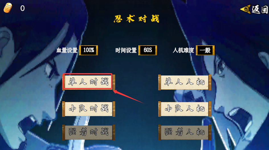 1.玩家进入到邮箱之后就可以去选择忍者大战,包含非常多的战场,血量也是可以自由调整的。