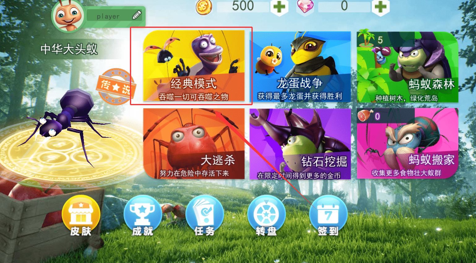2、游戏主界面很清晰呢,中间是各种模式入口,比如经典模式、龙蛋战争、蚂蚁森林等。