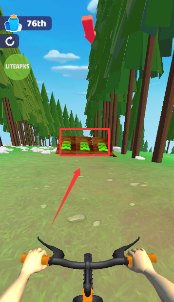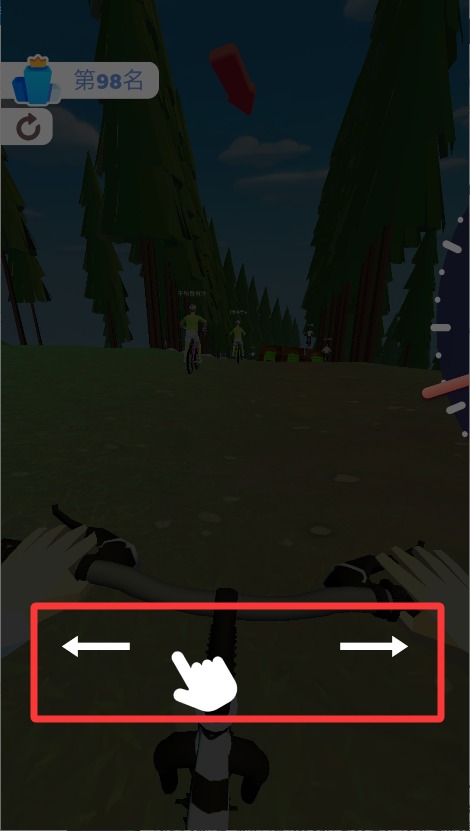 3、左右滑动屏幕灵活控制自行车转向,及时躲避路面障碍,保持平衡防止摔倒导致失败。