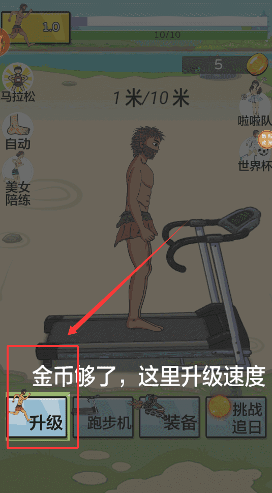 2、赚到金币后,就要考虑提升实力了。你可以先去“升级”选项里,强化基础能力,比如提升每次点击的收益。