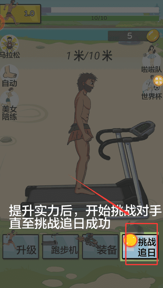 1、进入游戏后,你会看到一个简单的马拉松跑道界面。一开始你需要快速点击屏幕中央的“跑步”区域。