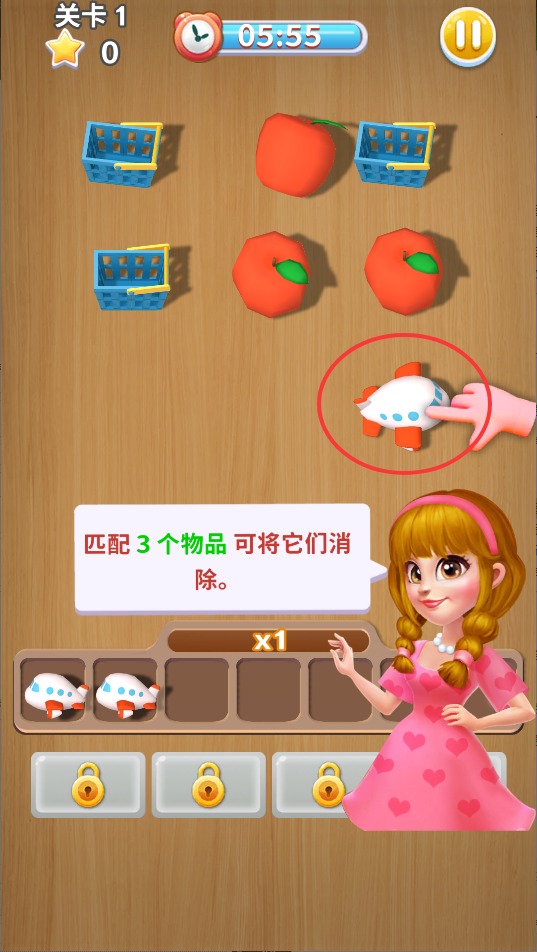 1、基础操作,轻点相邻2个以上相同物品即可合并,凑满3个自动消除,腾出空间完成关卡目标。简单的触控方式让各年龄段玩家都能快速上手。