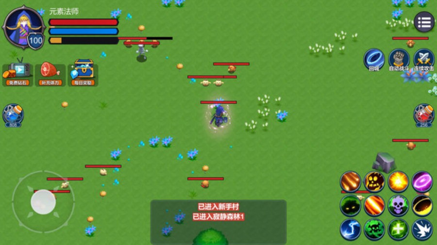 1. 魔法割草快感爆棚: 控制元素释放AOE法术,元素法师割草如风超解压!