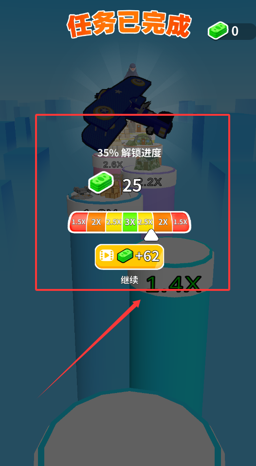 4、通关过程中会遇到解锁进度如35%和倍数奖励如2.6x、25.2x等,这些倍数能帮你快速提升得分。