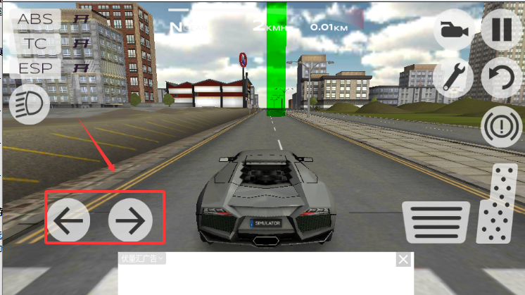 1、启动后先熟悉操控,左侧按键控制方向,右侧设置油门刹车,右上角可切换驾驶视角,夜间需开启车灯保障安全行驶。
