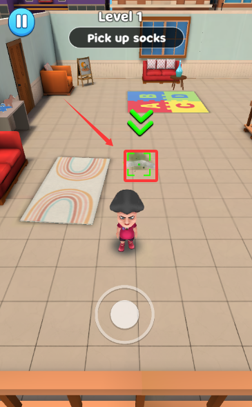 1、进入游戏关卡后首先需观察场景布局,明确恶作剧的最终目标人物与可互动的环境物品,例如散落的臭袜子或待插花的花瓶,通过滑动屏幕控制角色移动至这些道具旁边。