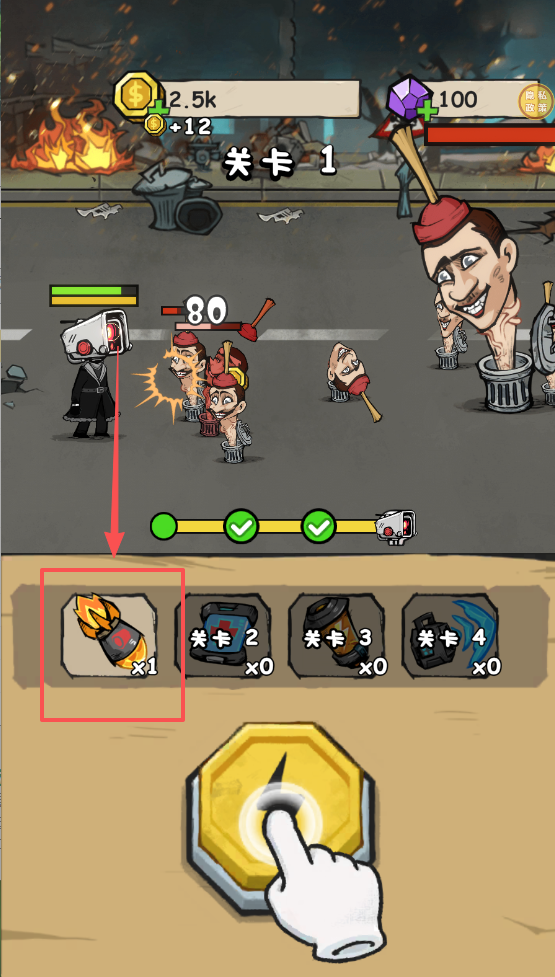 3、通过关卡后,比如通关“关卡1”后,会进入胜利和奖励选择界面