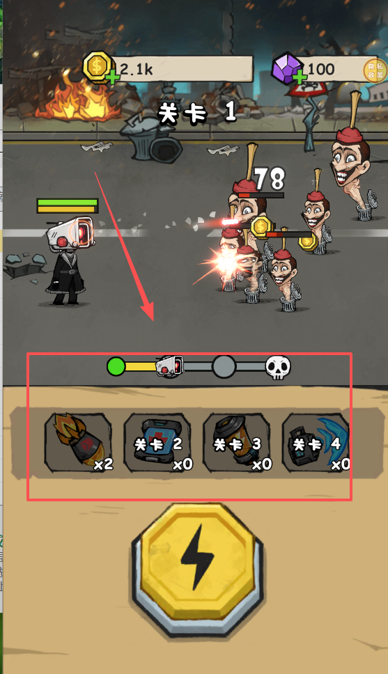 1、在关卡界面,你会看到顶部的金币和某个数值