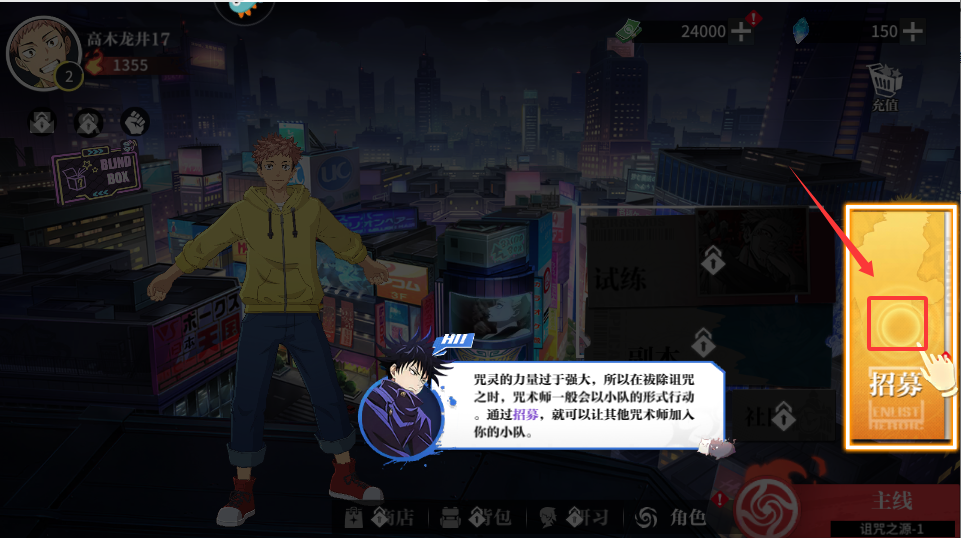 1、进入游戏后首要任务是利用系统赠送的免费抽卡机会组建初始队伍,优先招募如五条悟这类具备群体伤害能力的核心输出角色,为后续推进主线剧情与挑战副本。