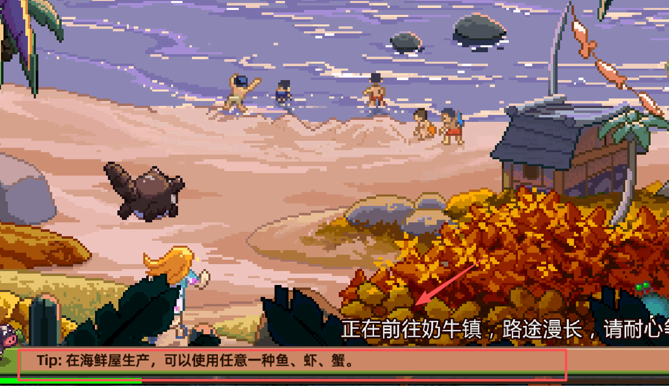 4、加载过程中界面会提示“正在前往奶牛镇”,并给出小技巧,比如在海鲜屋生产。