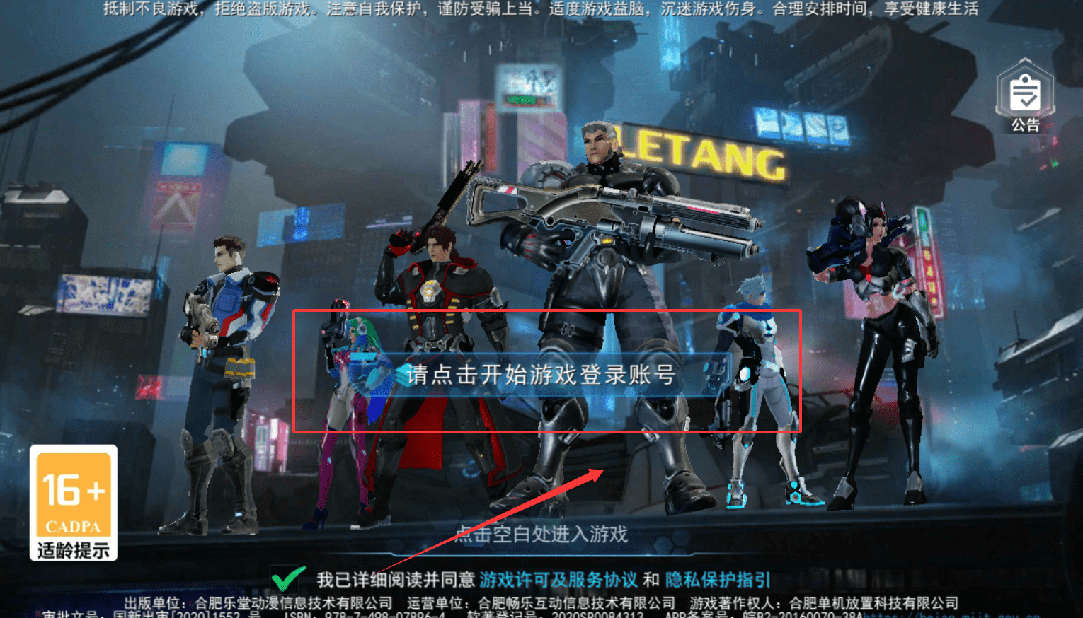 1、首先呢,在主界面点击空白处进入游戏,并详细阅读并同意相关协议。