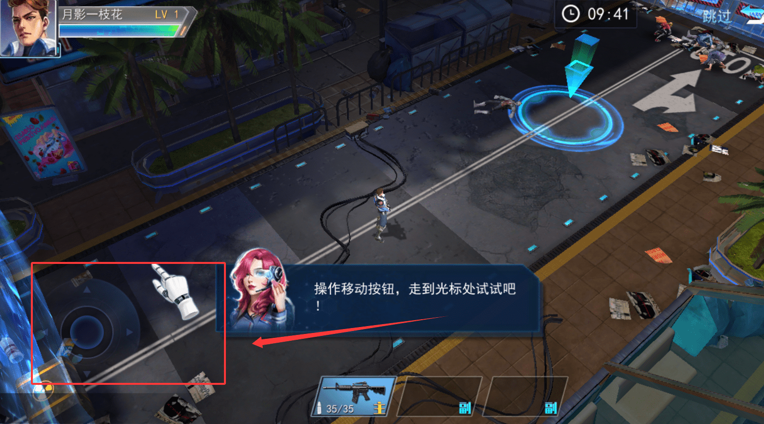 2、进入游戏后,先熟悉角色操作,你可以尝试操作移动按钮走到光标处,这是基础移动练习。