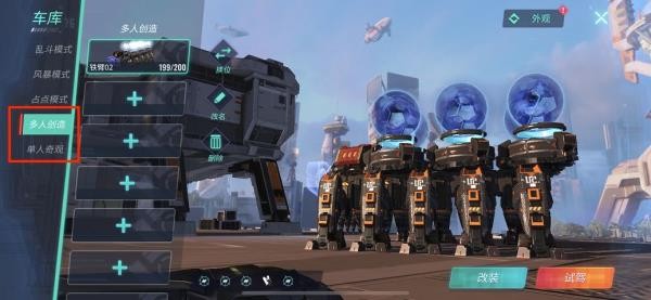 1、暂时只有创造模式,可支持多武器开火。也就是【多人创造】和【单人奇观】的车库可以支持。以下,用多人创造的车来举例。