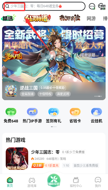 1、初次使用需完成应用的安装并授予必要权限,启动后进入主界面可浏览各类热门游戏推荐,通过首页上方的搜索框输入关键词能快速定位特定游戏资源或相关礼包福利。