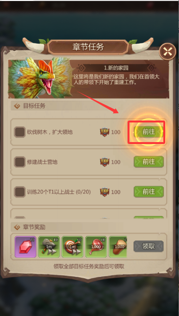 1、游戏初期需从零开始建设部落家园,核心任务是合理规划基础设施并训练部落士兵,通过野外探索捕捉并驯化多种恐龙为己方战力,为组建初始军团积累必要资源。